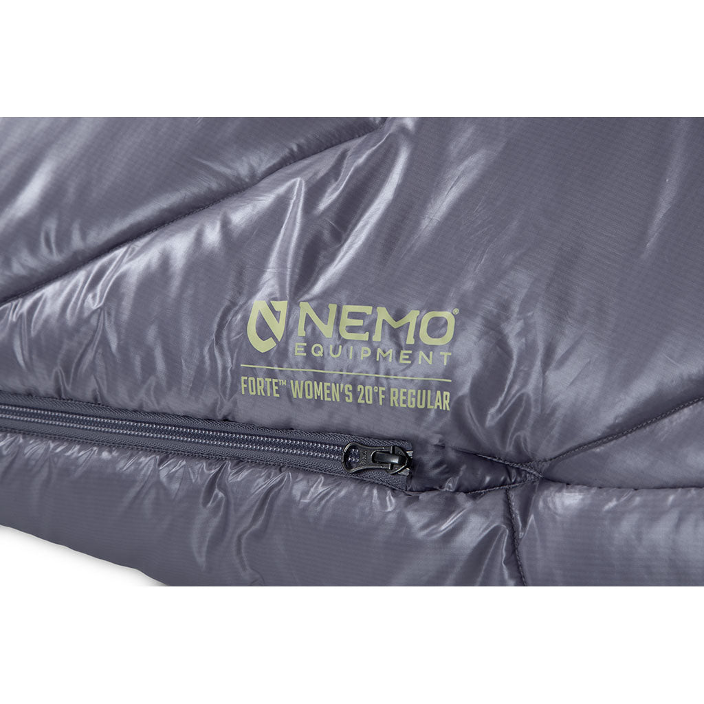• Opposite-sided zippers on Forte men's and women's models increase versatility by allowing them to be zipped together into a double sleeping bag
