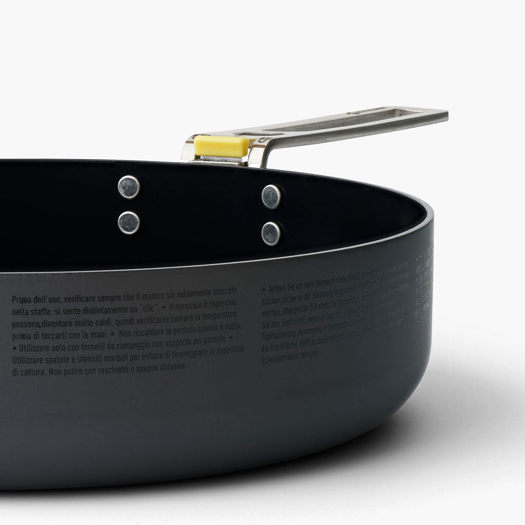 - Abnehmbarer Click-Safe-Griff aus rostfreiem Stahl, der zum platzsparenden Verpacken umgedreht werden kann