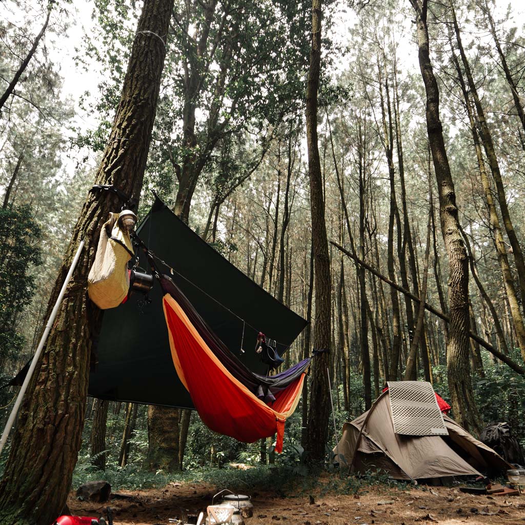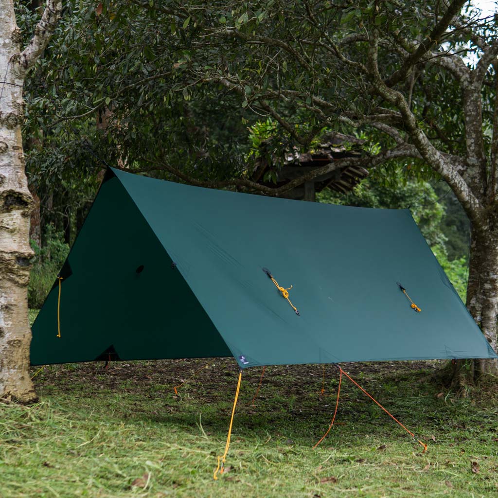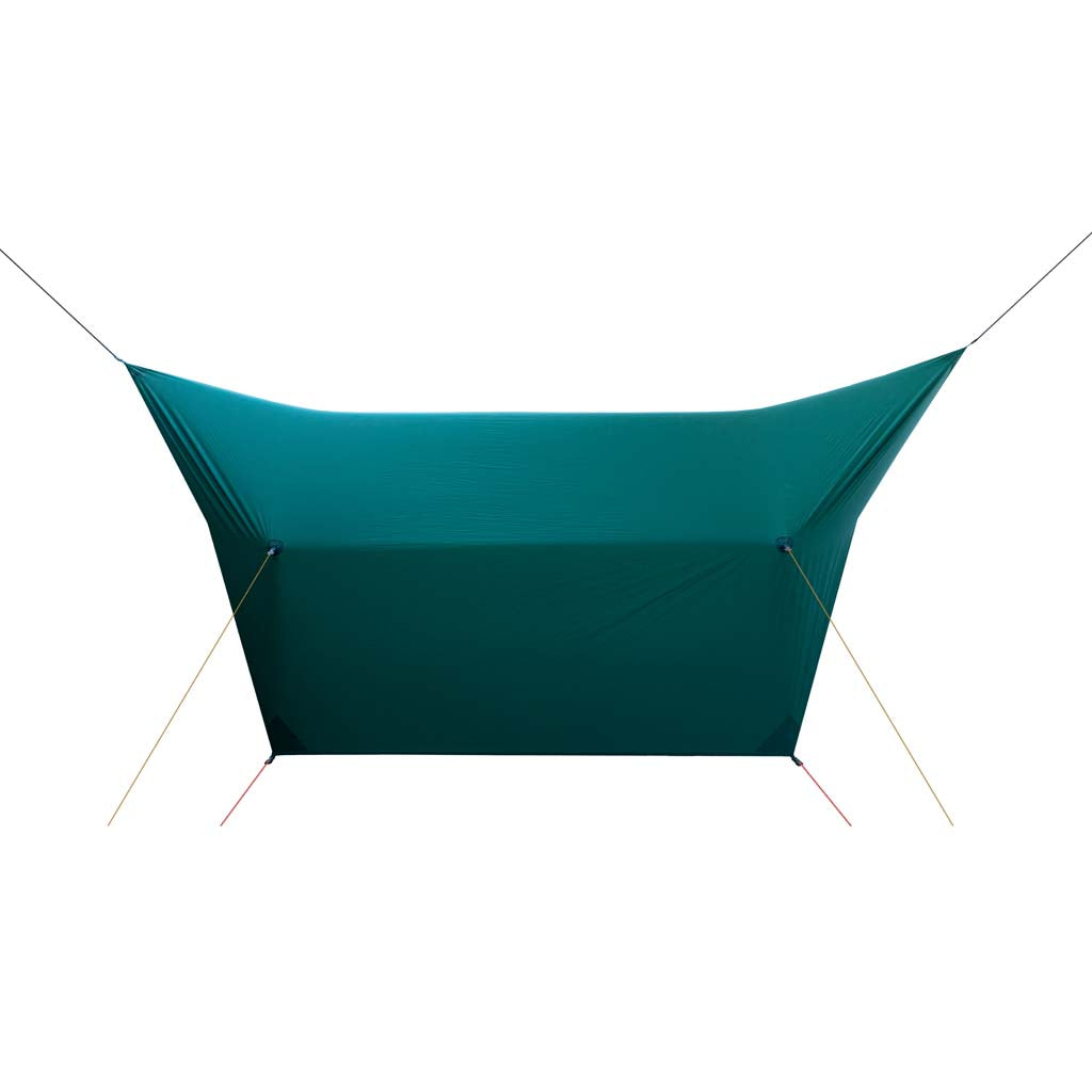 Hängemattencamping im Vereinigten Königreich kann ein bisschen wie ein Würfelspiel sein. Selbst wenn es hell und klar ist, wenn Sie einschlafen, wissen Sie nicht, ob Sie in der Nacht von einem Regenschauer geweckt werden, besonders wenn Sie im Herbst, Winter oder Frühling unterwegs sind. Aus diesem Grund empfehlen wir immer, Ihr Setup mit einem zuverlässigen Tarp zu kombinieren - und wir glauben nicht, dass es ein zuverlässigeres Tarp als das Fullmoon Tarp von Ticket to the Moon gibt. Es wurde entwickelt, um mehr Schutz vor den Elementen zu bieten, und bietet bei diagonalem Aufstellen fast 4 Meter Dachschutz, genug, um Ihr Lager fast vollständig zu umschließen. Und dank des hochwertigen 20D-Sil-Nylon-Materials ist es selbst bei stärksten Regengüssen vergleichsweise leise - damit Sie zwischen den Bäumen erholsam schlafen können.