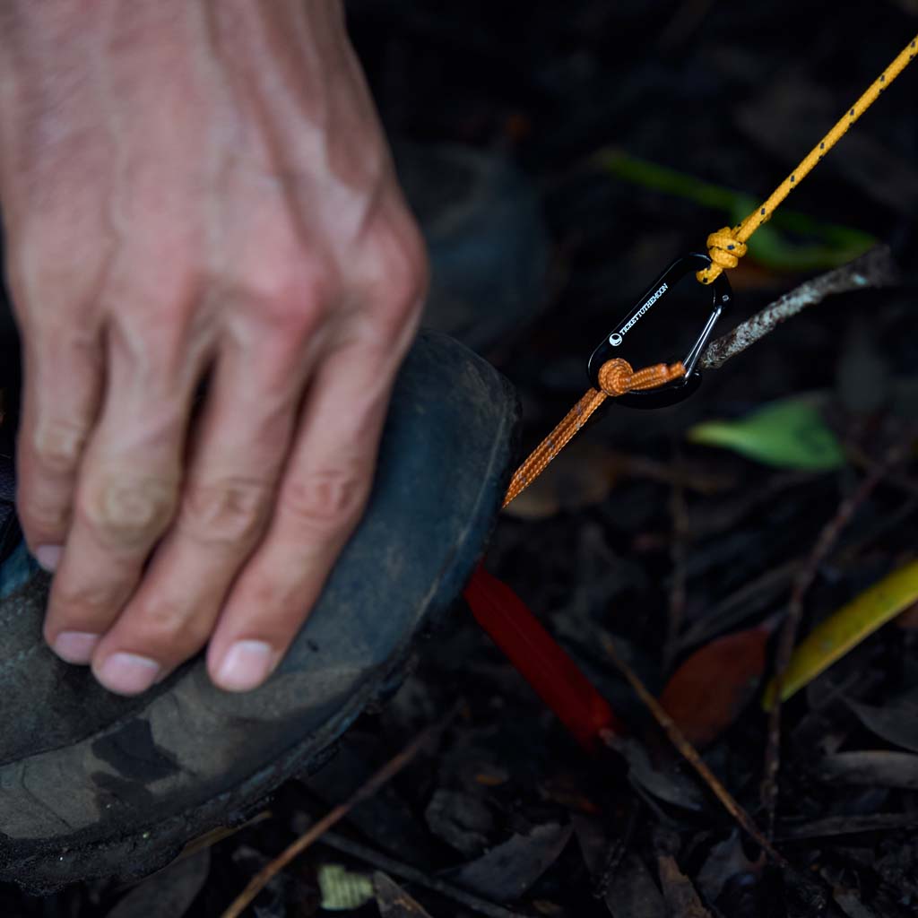 • Abspannleinen: Blau 2× 2,5 m; Gelb 8× 1,5 m + 2× 0,35 m; Orange 4× 1 m (inkl. Karabiner & Schnellspannschnallen)