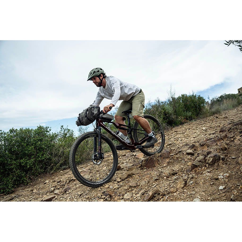 Fahrräder sind eine großartige Möglichkeit, um von A nach B zu kommen, aber sie haben nicht viel Stauraum an Bord. Die Lösung ist das Ortlieb-Sortiment an Bikepacking-Taschen, darunter auch der praktische Handlebar Pack. Es hat die perfekte Größe, um einen Schlafsack und eine Isomatte zu verstauen, und ist so konzipiert, dass es für alle Arten von Rennrad- und Hybridlenkern (sogar Carbonlenker) geeignet ist. Rollverschlüsse an beiden Enden sorgen für einen schnellen Zugriff auf die Ausrüstung, während externe Kompressionsriemen das Befestigen zusätzlicher Ausrüstung an der Außenseite ermöglichen. Das versteifte Innere des Rucksacks und die Befestigung am Steuerrohr bieten zusätzliche Stabilität in jedem Gelände und machen ihn zu einem wirklich abenteuertauglichen Bikepacking-Equipment.
