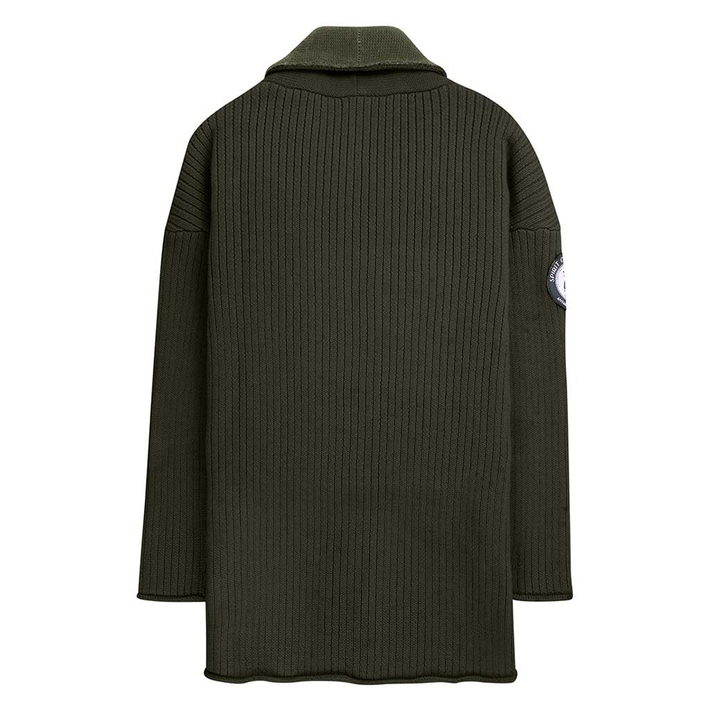 - Strickjacke aus norwegischer Wolle im Rippenstrick mit Kragen aus Merinowolle