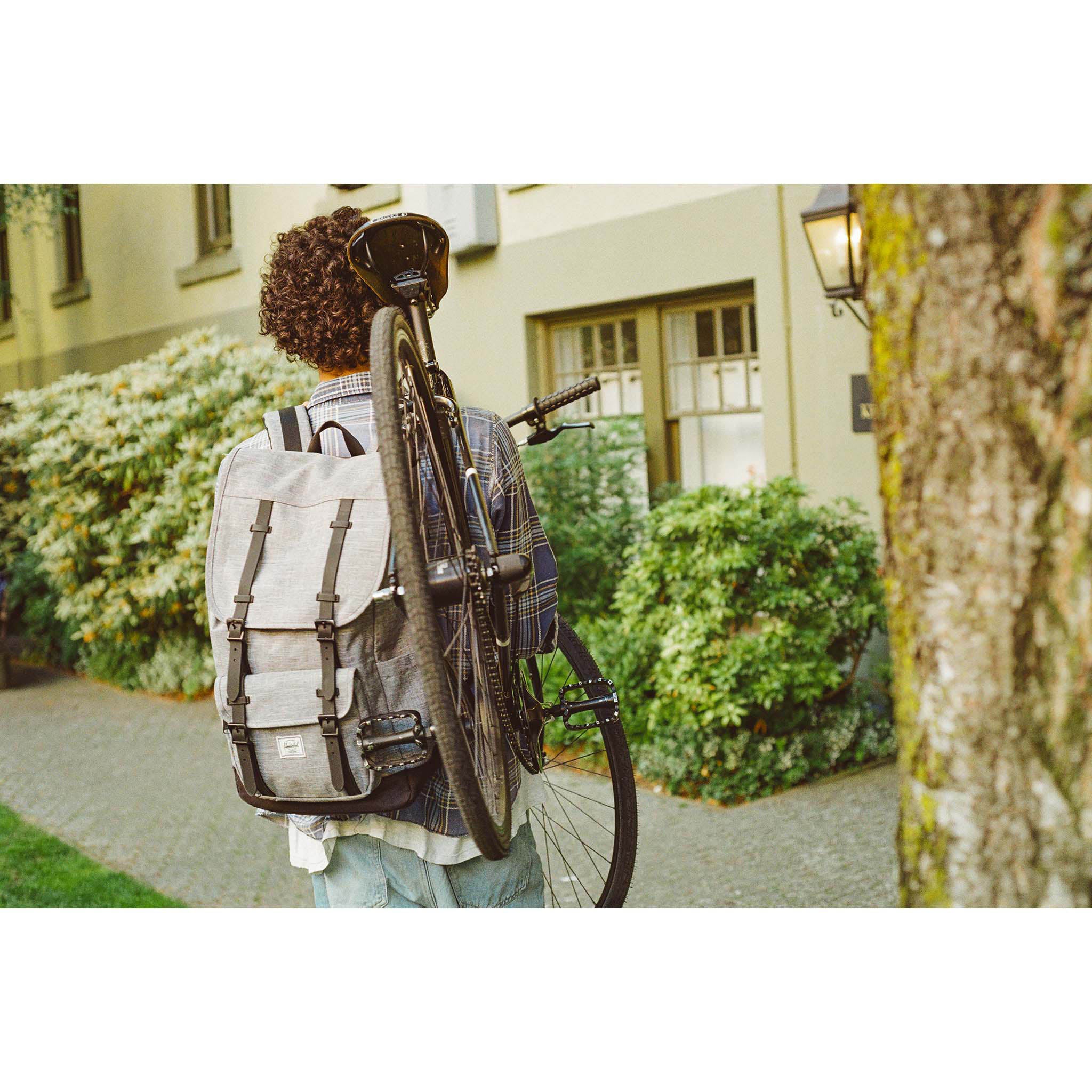 To create an icon, you need heritage, hard work, and a timeless design. Which is exactly what has been poured into Herschel’s epic Little America backpack over the years. The result is a pack that’s an instant icon, one you’ll see hanging off the shoulders of daydreamers, inner-city adventurers and style-conscious commuters all over the world. But the bag’s success it’s not just a product of its bold aesthetics: The Little America is hyper-functional, too. It comes with a dual-entrance laptop sleeve, two expandable side pockets perfect for carrying water bottles, a protected front pocket and a rear gadget compartment, and a buttery-smooth cinch closure system that is super protective and a joy to use. For added eco-peace of mind, the Little America is also manufactured out of EcoShell — a sustainable and durable fabric made exclusively of recycled water bottles that were diverted from landfill sites. This version, the Standard, delivers 30 litres of convenient storage space; perfect for carrying everything you could ever need on a big day out in the city — wherever the road takes you.