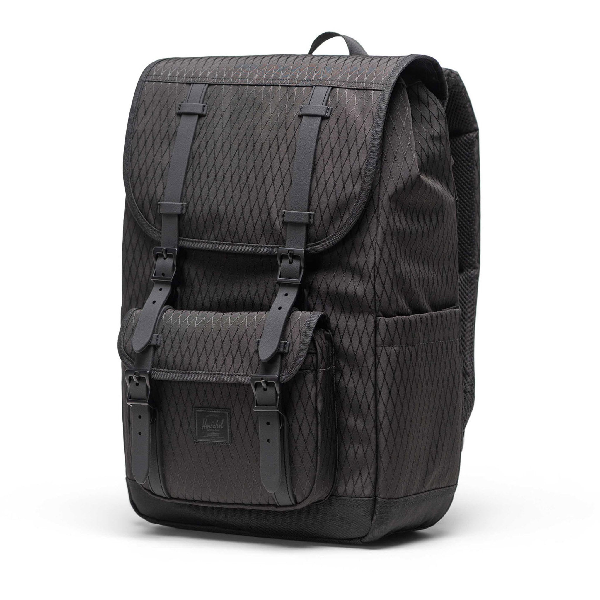 To create an icon, you need heritage, hard work, and a timeless design. Which is exactly what has been poured into Herschel’s epic Little America backpack over the years. The result is a pack that’s an instant icon, one you’ll see hanging off the shoulders of daydreamers, inner-city adventurers and style-conscious commuters all over the world. But the bag’s success it’s not just a product of its bold aesthetics: The Little America is hyper-functional, too. It comes with a dual-entrance laptop sleeve, two expandable side pockets perfect for carrying water bottles, a protected front pocket and a rear gadget compartment, and a buttery-smooth cinch closure system that is super protective and a joy to use. For added eco-peace of mind, the Little America is also manufactured out of EcoShell — a sustainable and durable fabric made exclusively of recycled water bottles that were diverted from landfill sites. This version, the Mid, delivers 21 litres of convenient storage space; perfect for carrying everything you could ever need day to day — whether you’re heading out on an urban adventure or simply heading into the office.
