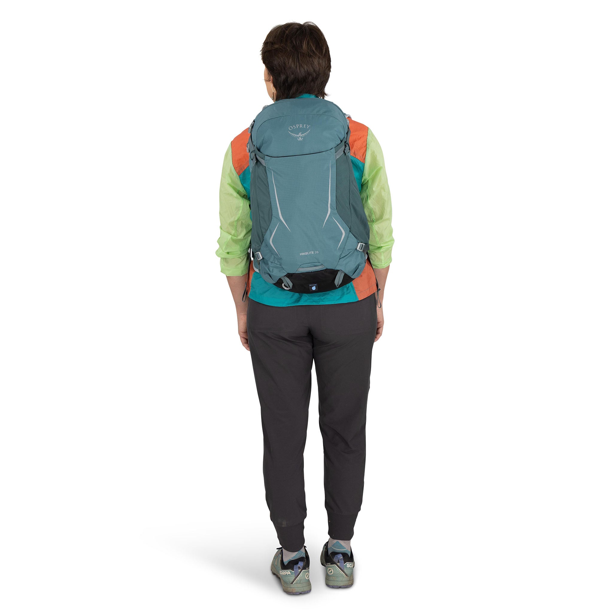 • Dual trekking pole loops + Internal reservoir sleeve with hose port in backpanel and Osprey Hydraclip for easily hanging a reservoir