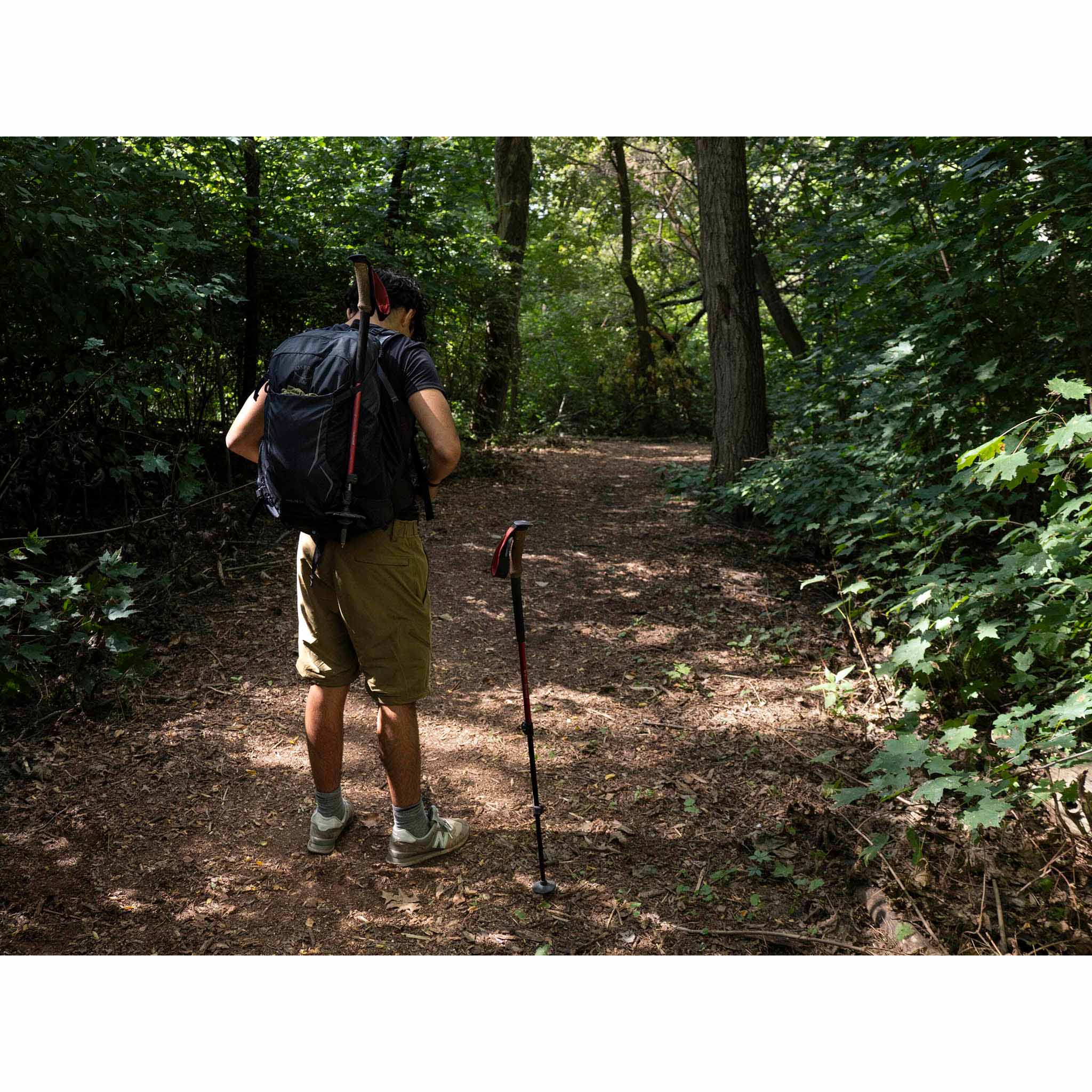 • Dual trekking pole loops + Internal reservoir sleeve with hose port in backpanel and Osprey Hydraclip for easily hanging a reservoir