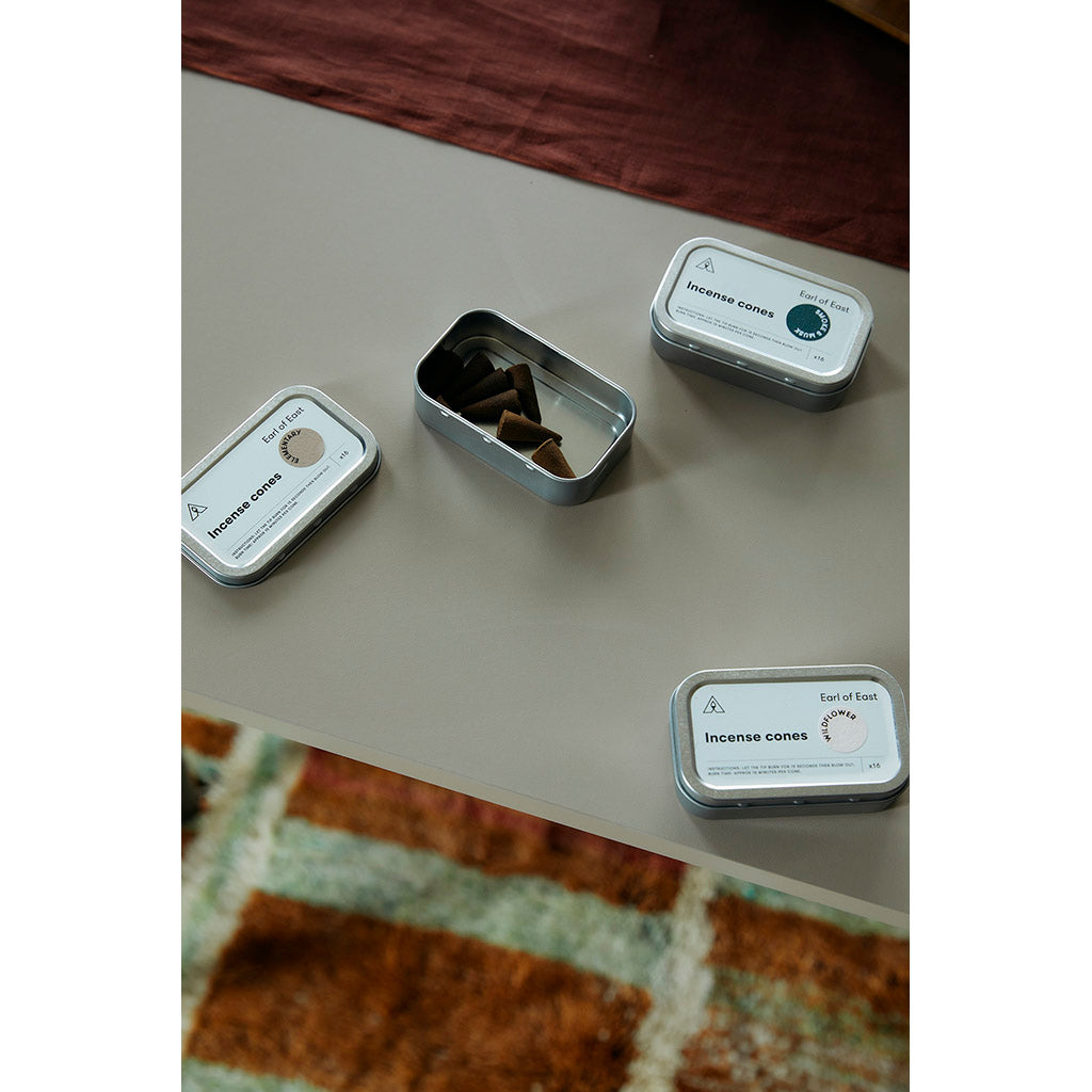 - Kompakte Geschenkdose mit 16 duftenden Räucherkegeln