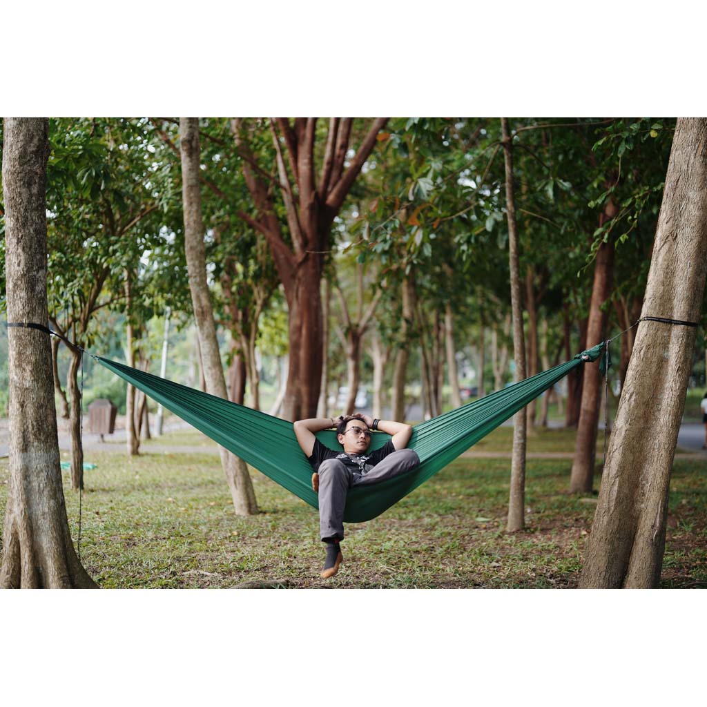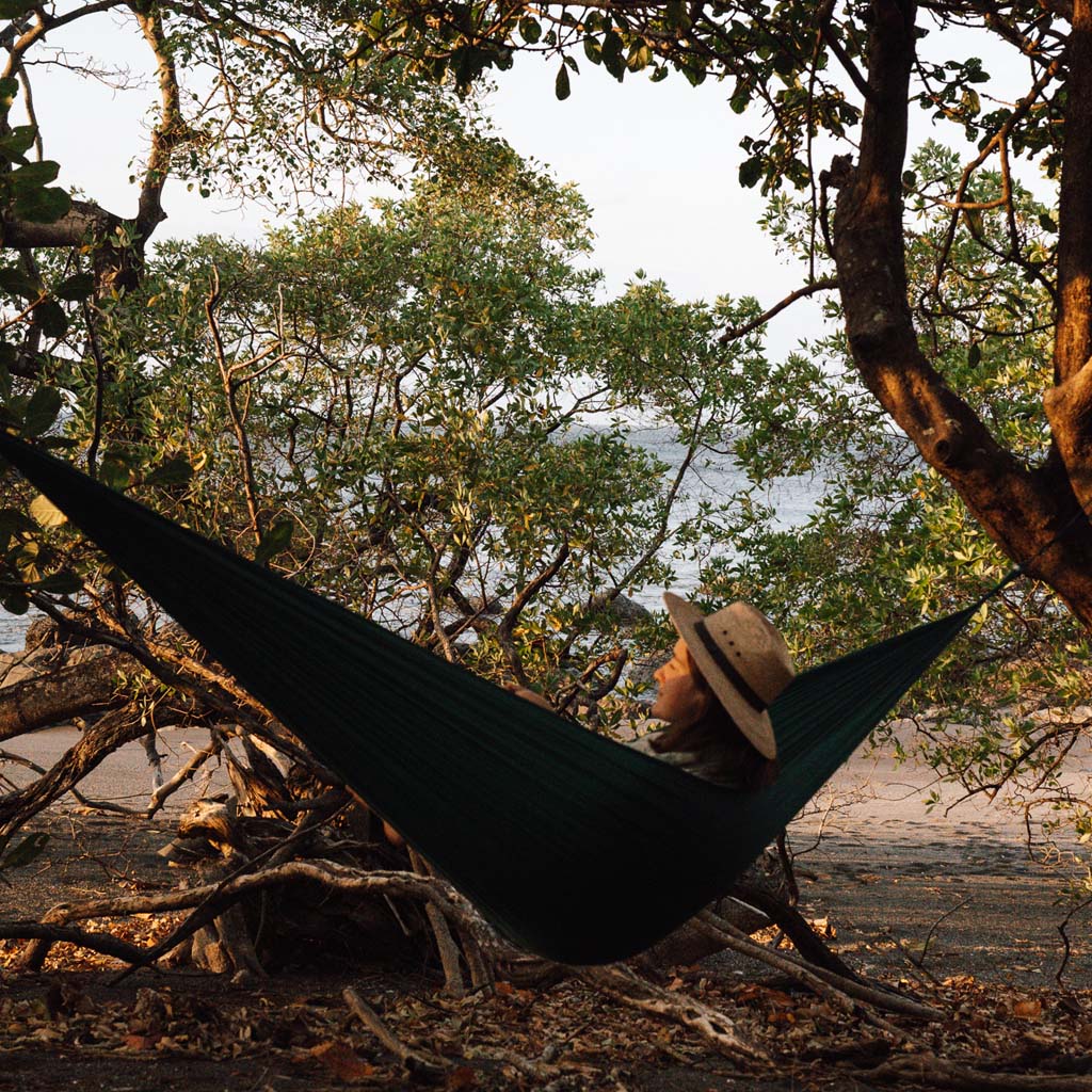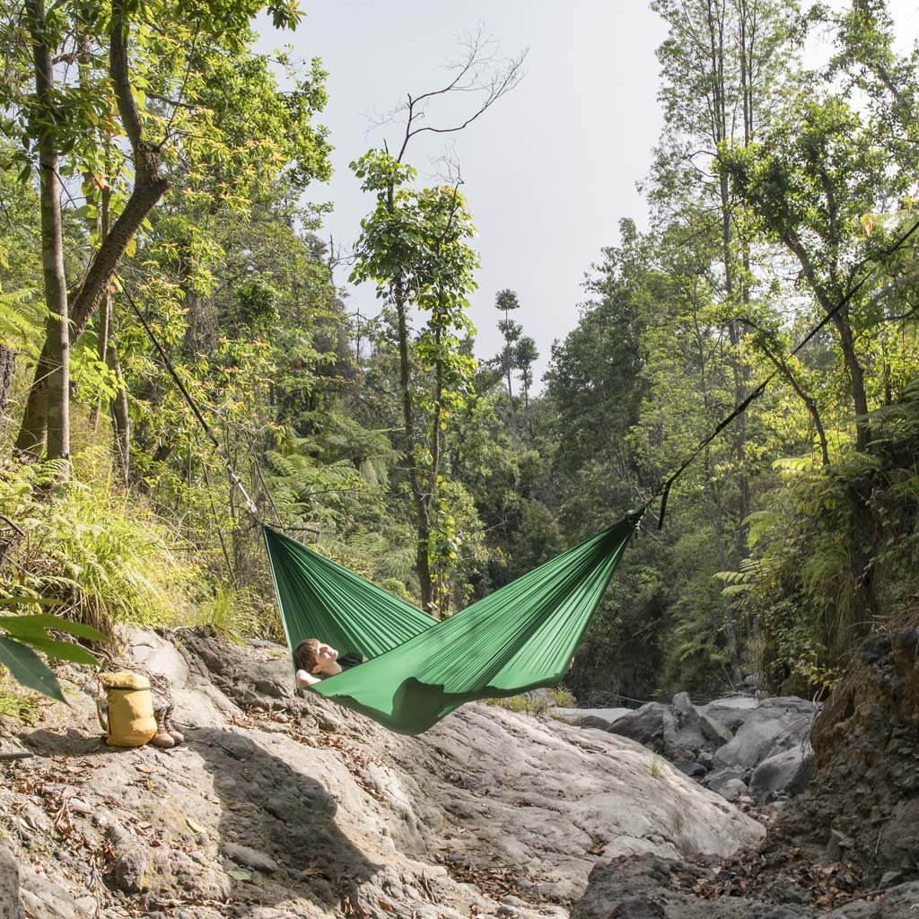 Egal, ob Sie ein erfahrener Baumbewohner oder einfach nur neugierig auf Hängematten sind, die balinesische Marke Ticket to the Moon stellt die besten Nylon-Fallschirmhängematten her, die es gibt. Und das sollten sie auch sein, wenn man bedenkt, dass diese Sultane des Swing schon seit den 90er Jahren im Geschäft sind. Ihre Hängematten sind leicht, schnell trocknend und maschinenwaschbar und werden nach höchsten Standards handgefertigt.