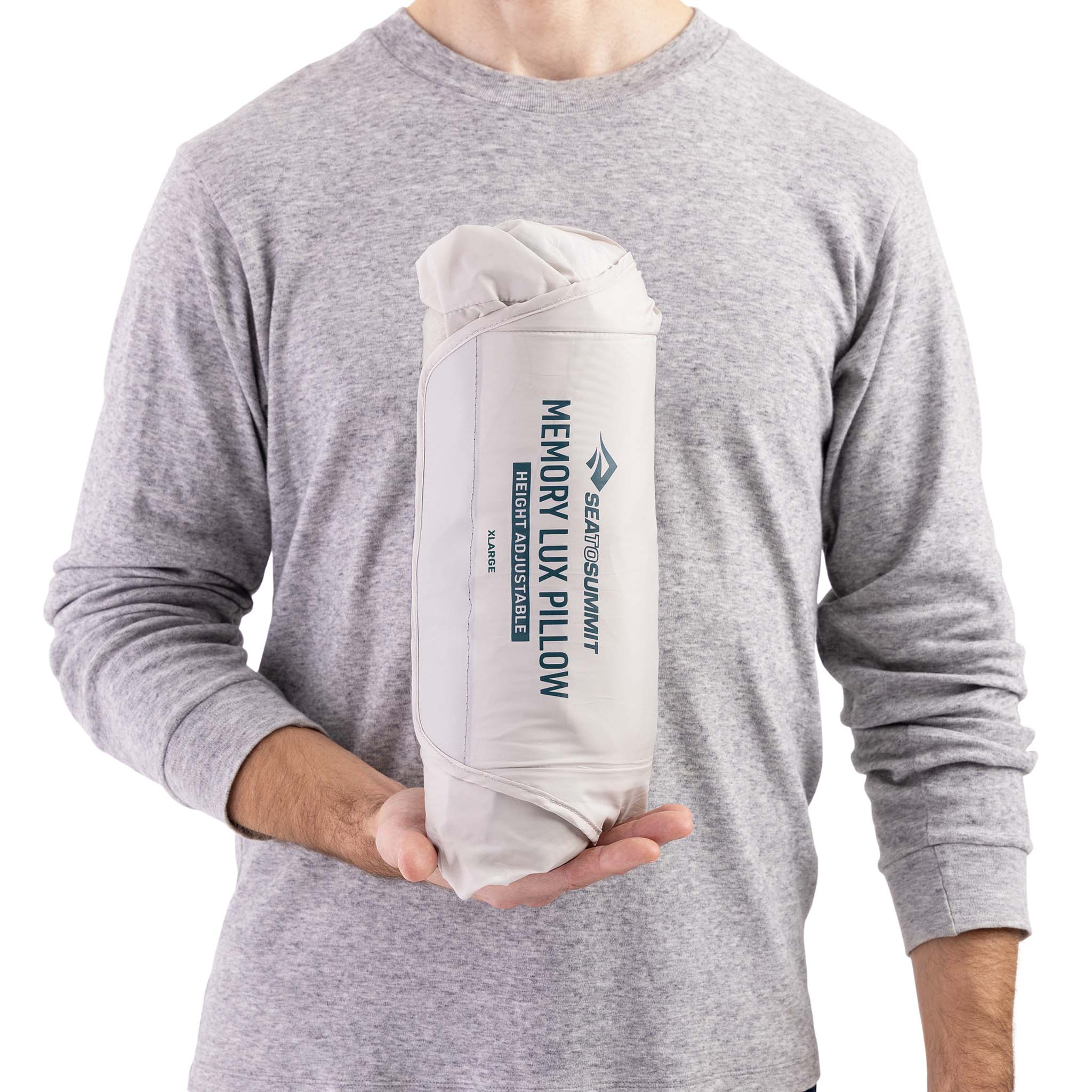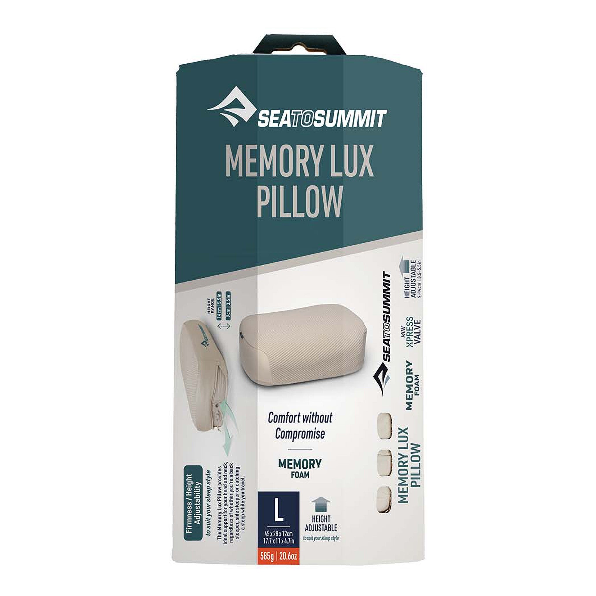Anyone who's tried fashioning a pillow from a fleece stuffed inside a dry bag knows the score – it's rubbish, and you wake up with a crick in your neck that lasts until lunchtime. Sea to Summit's Memory Lux Pillow is the antidote to all that faff: 5cm of perforated memory foam paired with a self-inflating layer that you can adjust from 9-14cm depending on whether you're a side sleeper or a back sleeper. The brushed stretch-knit outer case is removable and machine washable, which matters more than you'd think after a week on the road. At 585g for the Large, it's not ultralight territory, but if you're van touring or car camping, the extra weight is worth it for an actual decent night's sleep. Rolls up into its own stuff sack without needing extra straps or drawcords – just compress, roll, secure.
