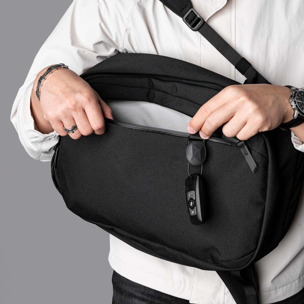 - Schnell zugängliche vertikale Vordertasche mit Schlüsselclip