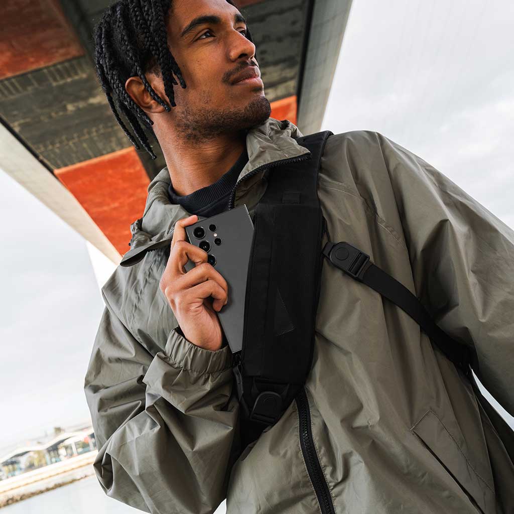 • Externe Taschen halten Telefon und andere wichtige Dinge sofort griffbereit