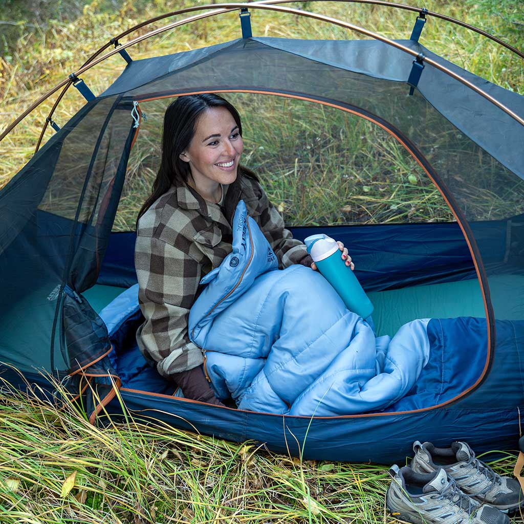 Bei diesem klassischen Mumienschlafsack steht die Funktionalität im Vordergrund, ohne unnötige Features, die den Preis in die Höhe schießen lassen. Der Mistral verfügt über eine kuschelige CloudLoft-Synthetikisolierung, die vom frühen Frühling bis zum Spätherbst zuverlässig wärmt, mit einer Extremtemperatur von -7 °C und zugluftgesicherten Reißverschlüssen, die ein Auskühlen verhindern. Dank der versetzten Steppkonstruktion gibt es auch keine unangenehmen kalten Stellen. Der geräumige Fußraum bietet viel Platz, um die Zehen zu wickeln.