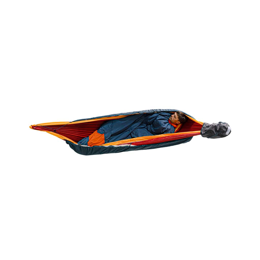 Wenn Sie schon einmal eine Nacht in einer Hängematte verbracht haben, wissen Sie, wie wichtig ein hochwertiges Unterbett ist: Die Wärme, die sie bieten, macht ein ohnehin schon komfortables Lager noch gemütlicher, während eine Nacht ohne Unterlage zu einer sehr kühlen Nacht zwischen den Bäumen führt. Aber was ist, wenn Sie in der Nähe des Lagers abhängen oder Ihr Hängemattenabenteuer mangels Bäumen mit einer Nacht in einem Zelt unterbrechen? Hier kommt der Moonquilt von Ticket to the Moon ins Spiel, ein vielseitiger und ultrakuscheliger Underquilt, der auch als Schlafsack oder Decke für den Gebrauch außerhalb der Hängematte verwendet werden kann. Der Moonquilt ist ideal für den ganzjährigen Einsatz bei Temperaturen um 5 °C oder wärmer und ist leicht und einfach zu transportieren - perfekt, um jedes Abenteuer, das Sie von nun an unternehmen, mit einer Extraportion Gemütlichkeit zu versehen.