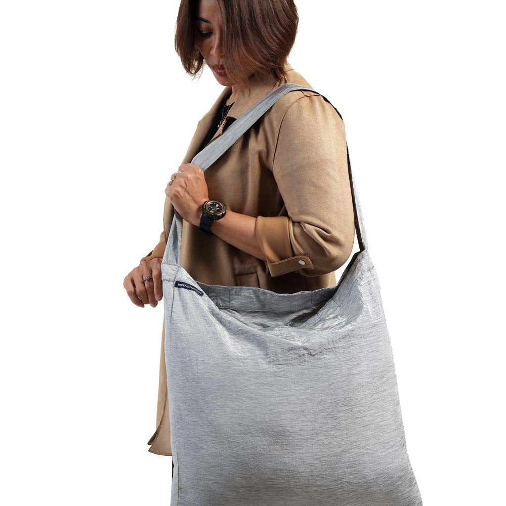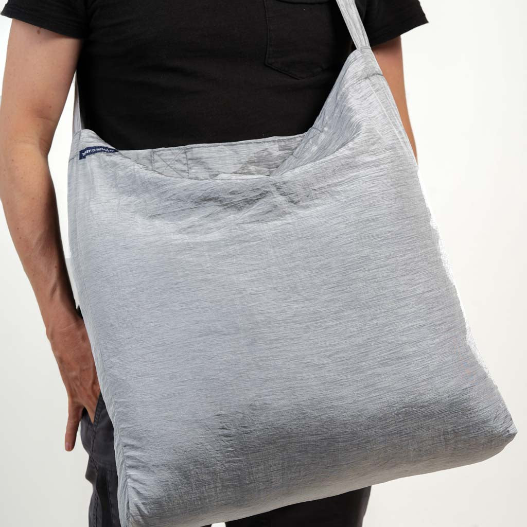 Ticket to the Moon hasst Abfall. Und zwar so sehr, dass sie sich weigern, welchen zu produzieren. Jedes Stück Stoff, das nach der Herstellung ihrer Hängematten, Steppdecken und Tarps übrig bleibt, wird gesammelt und gelagert, bis ihnen eine gute Verwendung dafür einfällt. Und genau das ist hier der Fall: Die Eco Bag von Ticket to the Moon ist ein alltägliches Accessoire, das nur aus Stoffresten und Materialien besteht, die sonst auf der Mülldeponie landen würden. Aber das bedeutet nicht, dass diese Tasche Müll ist. Die Eco Bag ist aus demselben strapazierfähigen Fallschirmnylon gefertigt, aus dem auch die Hängematten bestehen. Sie ist eine robuste, große und elegante Umhängetasche, die den Platz einnimmt, den sonst Einweg-Plastiktüten einnehmen würden. Sie ist in drei Größen erhältlich. Wählen Sie einfach die für Sie passende Größe aus - und freuen Sie sich jedes Mal, wenn Sie sie sich über die Schulter werfen, um unserem Planeten einen Gefallen zu tun.