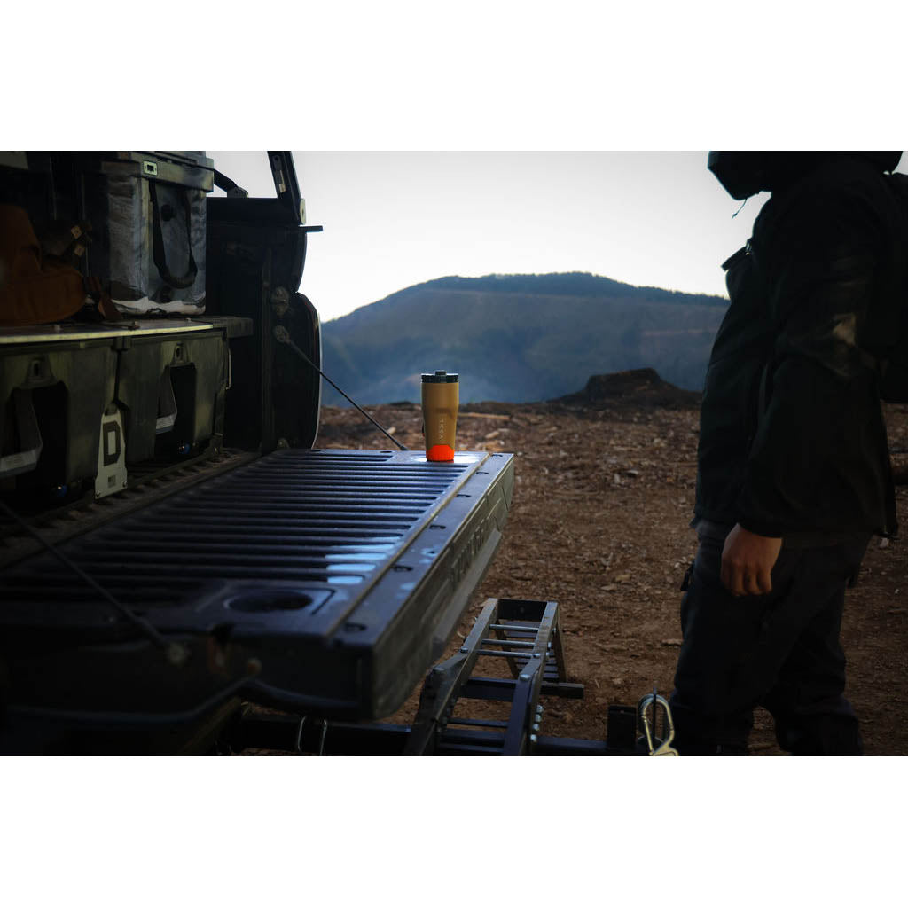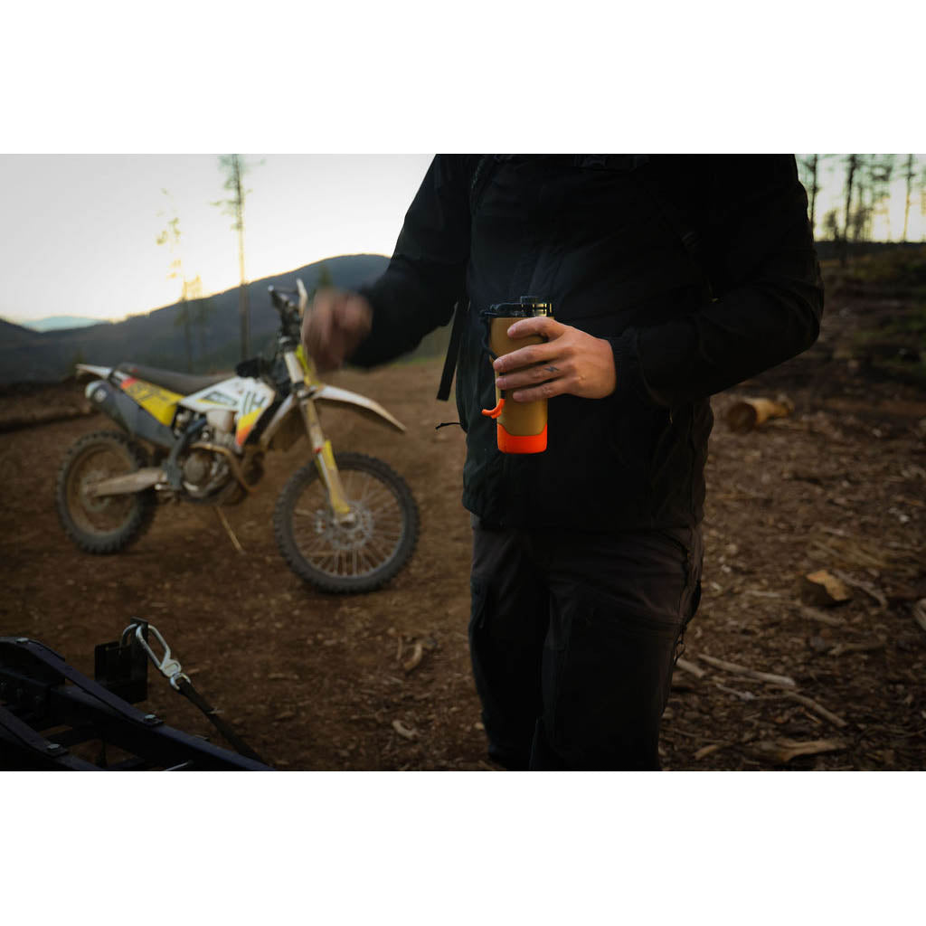 Der Rift Tumbler 16 oz ist genau das Richtige für alle, die morgens gerne einen kräftigen Kaffee trinken. Er besteht aus extra dickem, recyceltem Edelstahl mit doppelwandiger Vakuumisolierung und hält Ihren Kaffee stundenlang heiß - egal, wie lang der Weg ist. Der auslaufsichere, verschließbare Deckel mit gefedertem Verschluss ist für einhändiges Trinken geeignet, und der rutschfeste Silikonboden sorgt für einen sicheren Stand. Er passt in die meisten Getränkehalter und lässt sich mit dem weichen Karabinerhaken leicht am Rucksack befestigen. Der große Becher für große Abenteuer eignet sich für den Start in den Sonnenaufgang, ganztägige Fahrten und das Aufbrühen im Basislager.