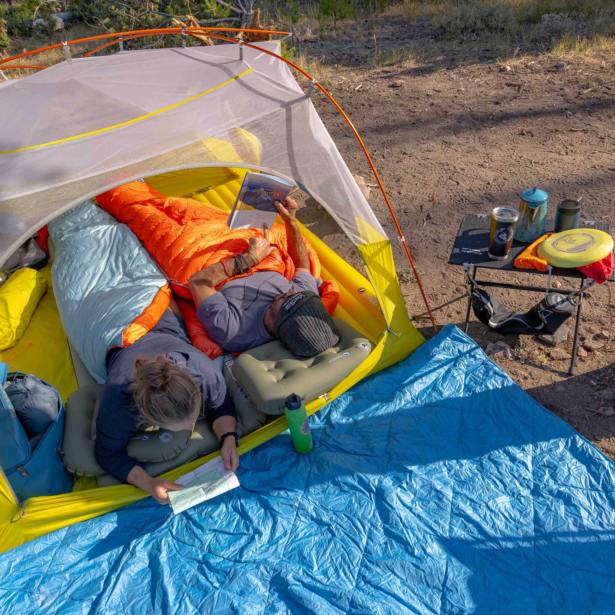 Tent design shouldn't require a degree in spatial geometry to figure out who gets stuck crawling over whom at 2am. Big Agnes' Salt Creek sorts this with three doors – two side vestibules plus an awning-style head entry – so everyone can get out without playing Twister. The vertical wall design and four-way DAC hubbed pole set create proper shoulder room rather than that claustrophobic coffin feel, and the 3D shelf pockets above your feet turn dead space into useful storage. At under 2kg packed, it's light enough for backpacking without entering the realm of tissue-paper fabrics that tear if you look at them wrong. The Low Vent feature on vestibule doors lets you crack them open for airflow whilst keeping weather out, which is essential when you're camped somewhere scenic but breezy. It's the sort of tent that feels like home after a long day rather than just a place to sleep.