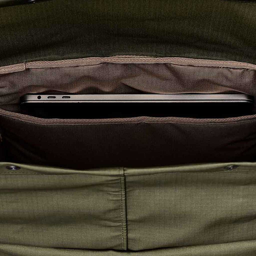 Filson ist zwar für seine gewachste Canvas-Ausrüstung der alten Schule bekannt, scheut sich aber auch nicht, ein moderneres Material zu verwenden, wenn es für den jeweiligen Einsatzzweck geeignet ist. Im Fall des Scout Rolltop-Rucksacks haben sie sich für ein extrem wasserabweisendes TPU-beschichtetes recyceltes Polyester entschieden. Das liegt daran, dass der Scout-Rucksack als Allzweckrucksack für Pendler und Wochenendausflügler konzipiert ist - und wenn man teure elektronische Geräte in der gepolsterten Laptop-Innentasche unterbringt, ist ein zuverlässiger Wetterschutz absolut unverzichtbar. Wie Sie es von einer Marke erwarten können, die sich mit der Ausrüstung von Goldsuchern am Klondike einen Namen gemacht hat, ist die Verarbeitungsqualität erstklassig und für den harten Einsatz im Alltag ausgelegt. Das Fassungsvermögen von 31 Litern und die praktischen Außentaschen bieten jede Menge Stauraum für die Ausrüstung im Büro oder auf dem Wanderweg, und das gepolsterte Rückenteil sorgt für einen hohen Tragekomfort, selbst wenn der Rucksack vollgepackt ist.