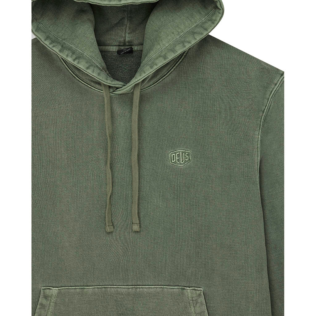 Was ist nur mit Kapuzenpullovern los? Man kauft sie ganz flauschig und kuschelig, und nach einer Handvoll Wäschen haben sie sich irgendwie in einen unförmigen Sack verwandelt, der sich anfühlt wie 80er Sandpapier. Dieser Shield-Kapuzenpullover von Deus umgeht dieses ganze Drama mit schwerem, gebürstetem Rückenfleece, das für eine lange Lebensdauer ausgelegt ist. Die Pigmentfärbung verleiht ihm ein leicht ungleichmäßiges Vintage-Finish, das so aussieht, als wäre er schon seit Jahren dein Lieblingskapuzenpullover, während die schwere Enzym-Stonewash-Wäsche dafür sorgt, dass er sich vom ersten Tag an richtig eingefahren anfühlt. Das dezent aufgestickte Logo auf der Brust sorgt für einen unaufdringlichen Look und die kastenförmige Passform ermöglicht es dir, ihn an kälteren Tagen zu überziehen. Diese Art von Kapuzenpullover wird zu deiner Standardwahl für alles, vom Einkaufen bis zum Netflix-Marathon.