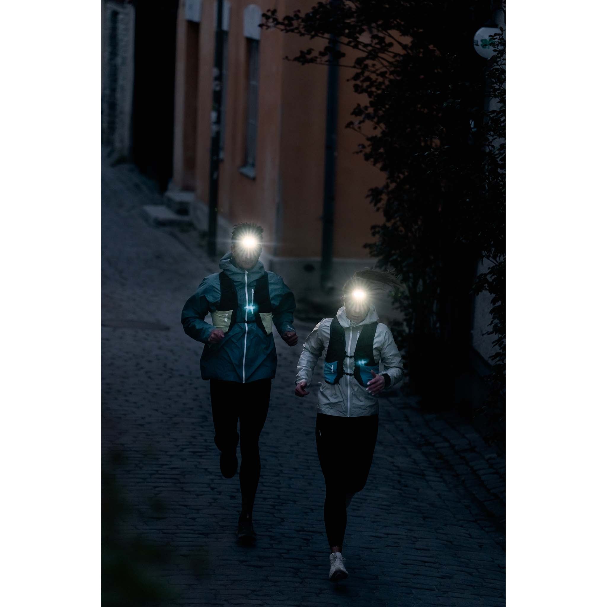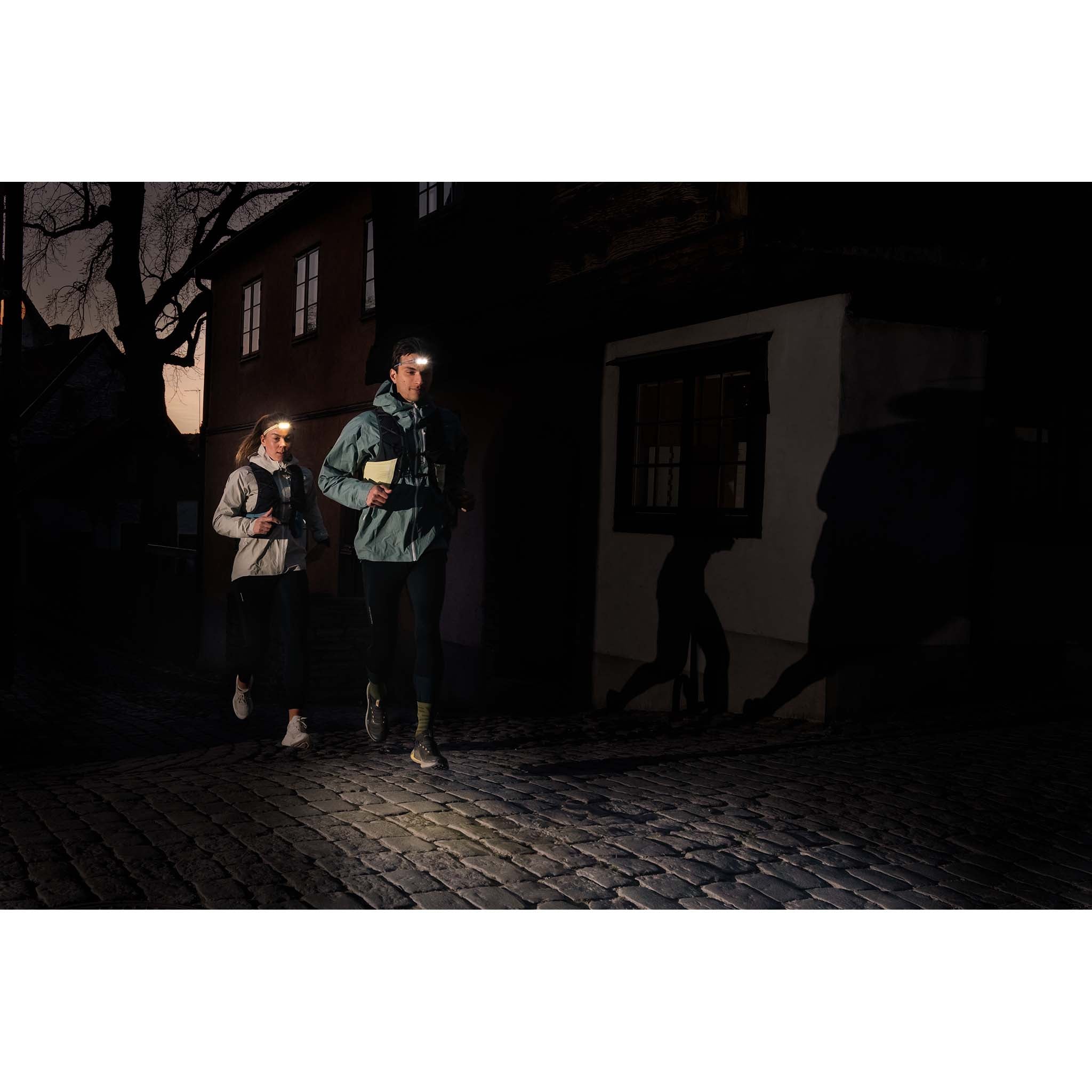 With a total weight of just 53g – including headband, battery and rear light – you'll struggle to find anything that matches the Silva Smini for lightweight functionality. Ideal for daily training runs or as a backup torch for longer races, it's a seriously capable headlamp – with a max light output of 250 lumen, plus two reduced power modes and a red light for preserving night vision. The double-beam system combines a long-reach spot and close-range flood light, helping to maintain visual comfort and prevent tunnel vision. In terms of charge, it's your standard USB-C rechargeable battery with a 4-step charge level indicator and a lock function so it doesn't accidentally come on in your running vest. At max lumens you'll get an hour and a half out of it, but that goes up to 2.5 hours on 100-lumen medium mode and a whopping 20 hours if you're just using it on low output for reading in your tent. It goes without saying that it's water-resistant, with a comfortable 15mm head band and a rear safety light with red and blinky modes.