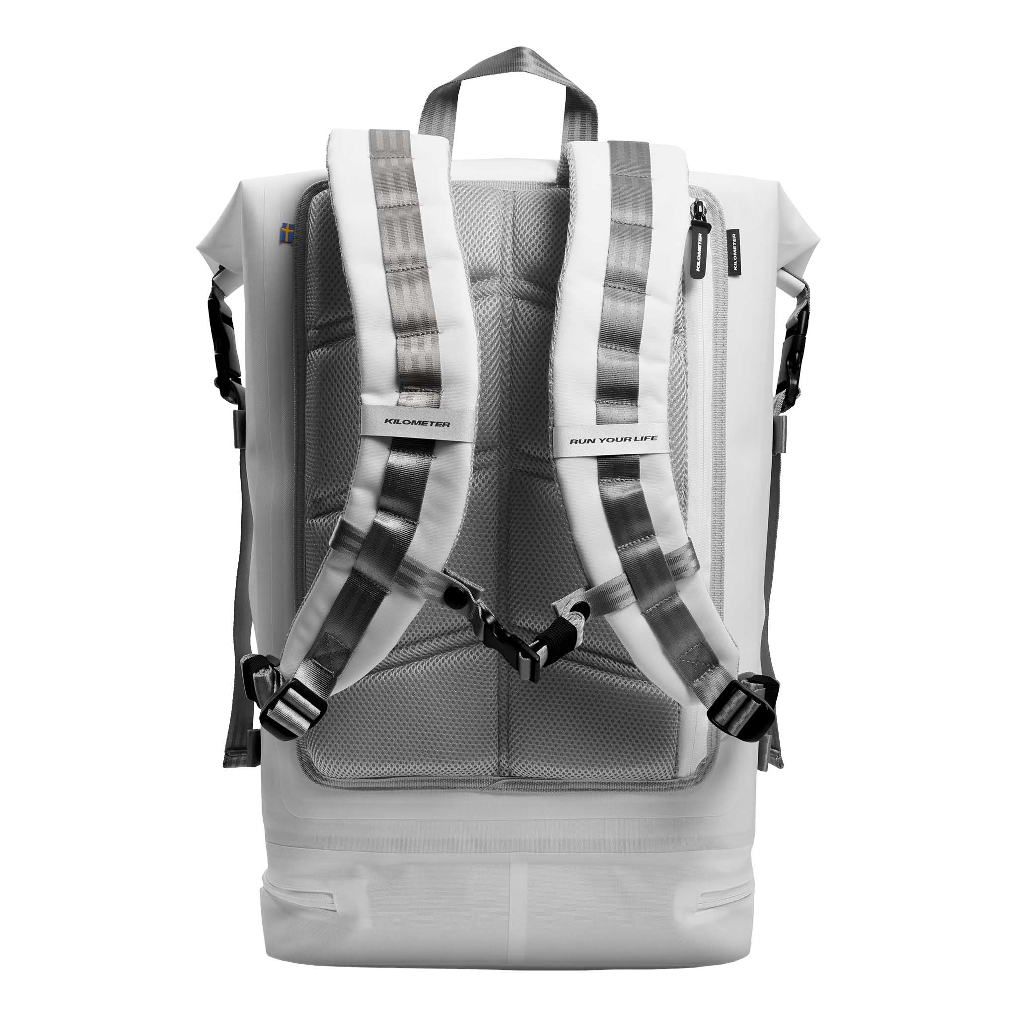 The Spin Bag 30L is designed for athletes who move through multiple environments in a single day — from the gym floor to the office to the pavement and back again. Kilometer built it to solve a universal training problem: keeping clean kit separate from the post-session gear that really needs its own space. A dedicated bottom shoe compartment, protected laptop sleeve and intuitive internal layout make staying organised effortless, even when the day gets messy. The 30L capacity hits the perfect middle ground for athletes who carry a lot but don’t want bulk, and the 600D recycled polyester with a waterproof coating holds up to wet pavements, sweaty kit and unpredictable weather. Finished with durable YKK zippers and purposeful pocketing, it’s made for people who train hard, recover fast and expect their gear to keep up.