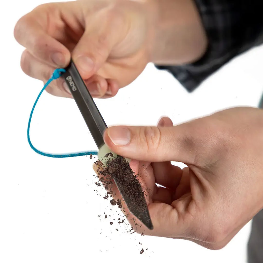 Ein Zeltlager abzubrechen ist eine Kunst, und jeder erfahrene Camper weiß, dass man am besten richtig packt, damit man nach der Rückkehr nach Hause nicht mit einer Menge Aufgaben konfrontiert wird. Eine Sache, die wir immer als fast unmöglich empfunden haben, ist, die Zeltheringe wegzupacken, ohne dabei eine Ladung Schlamm mitzunehmen. Und seien wir mal ehrlich: Das Spülbecken mit schlammigen Heringen zu füllen, um sie zu waschen, ist für niemanden ein Vergnügen. Deshalb waren wir begeistert, als wir die genialen Zeltheringe von NEMO entdeckten, die mit einem angebundenen Polymer-"Keks" ausgestattet sind, den man über den Hering streichen kann, um den ganzen Schmutz zu entfernen, bevor man ihn wegpackt. Und was noch besser ist: Er leuchtet im Dunkeln, so dass man nicht über Abspannleinen stolpern muss, wenn man nachts im Zeltlager unterwegs ist. Oh, und die Heringe selbst sind aus Aluminium der Serie 7000 mit einem Y-förmigen Querschnitt gefertigt, was eine starke und robuste Befestigung bei jedem Wetter gewährleistet.