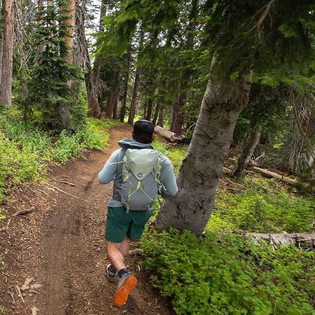 Die von Laufwesten inspirierten Schultergurte halten den Rucksack eng am Körper und verteilen das Gewicht, um Druckstellen beim Tragen zu vermeiden