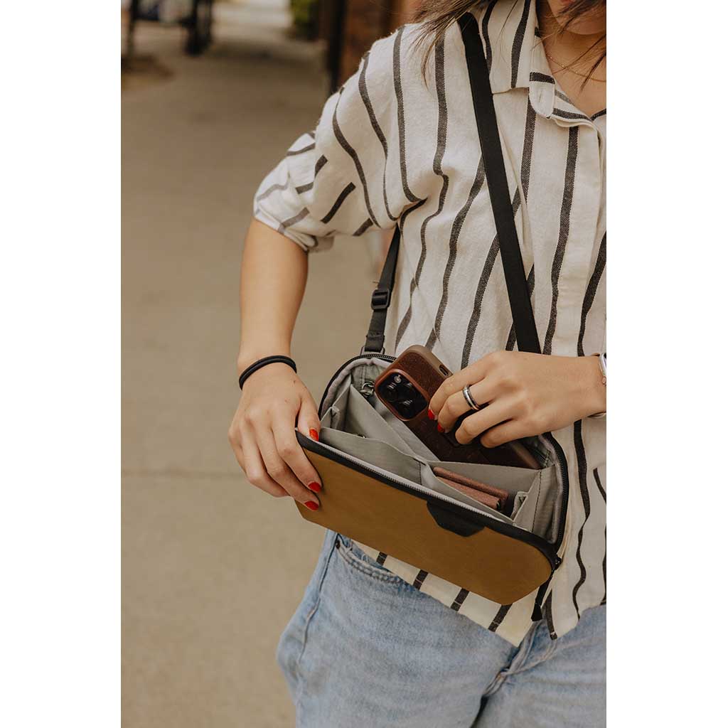 • Befestigungspunkte für Peak Design-Gurte (separat erhältlich), um die Tasche in eine kleine Umhängetasche zu verwandeln