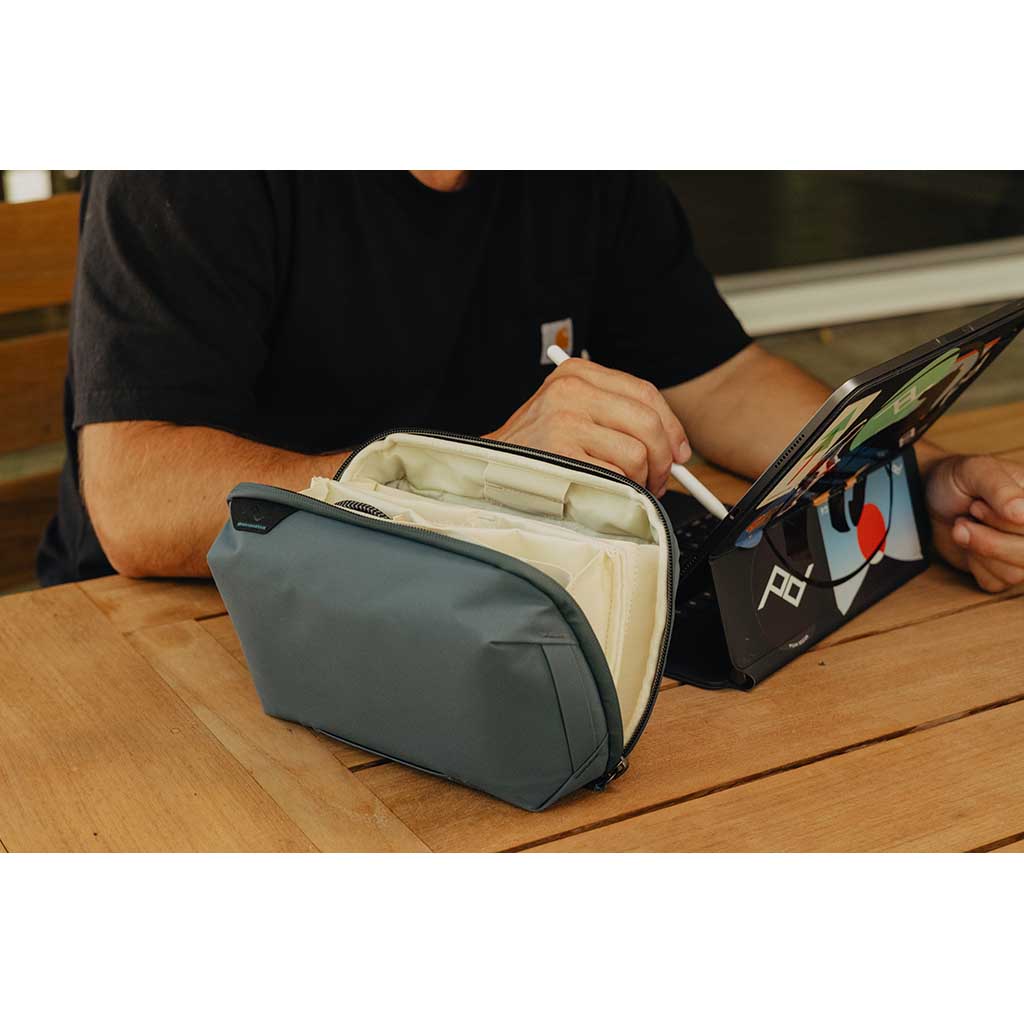 Wenn Sie unsere Meinung hören wollen, ist der Name "Tech Pouch" ein wenig zu kurz gegriffen. Ja, sie eignet sich hervorragend für Ihre Ladegeräte, SD-Karten und Kabel, aber sie ist auch ein fantastischer Organizer für all Ihre Alltagsutensilien - von Stiften bis zu Taschenmessern. Die scheinbar endlosen Stretch-Taschen im Origami-Stil machen die Tasche zu einer Art TARDIS, mit elastischen Zubehörschlaufen und Reißverschlussfächern. Das wetterfeste 400D-Nylon-Canvas-Gehäuse ist mit einer hochdichten Schaumstoffpolsterung ausgestattet, die für Schutz und Struktur sorgt, während der Clamshell-Reißverschluss den vollen Zugriff ermöglicht. Und es wäre nicht Peak Design, wenn es nicht auch ein paar clevere kleine Features gäbe, wie z. B. die externe Tasche für den Reisepass und die Kabeldurchführung zum einfachen Aufladen von Geräten.