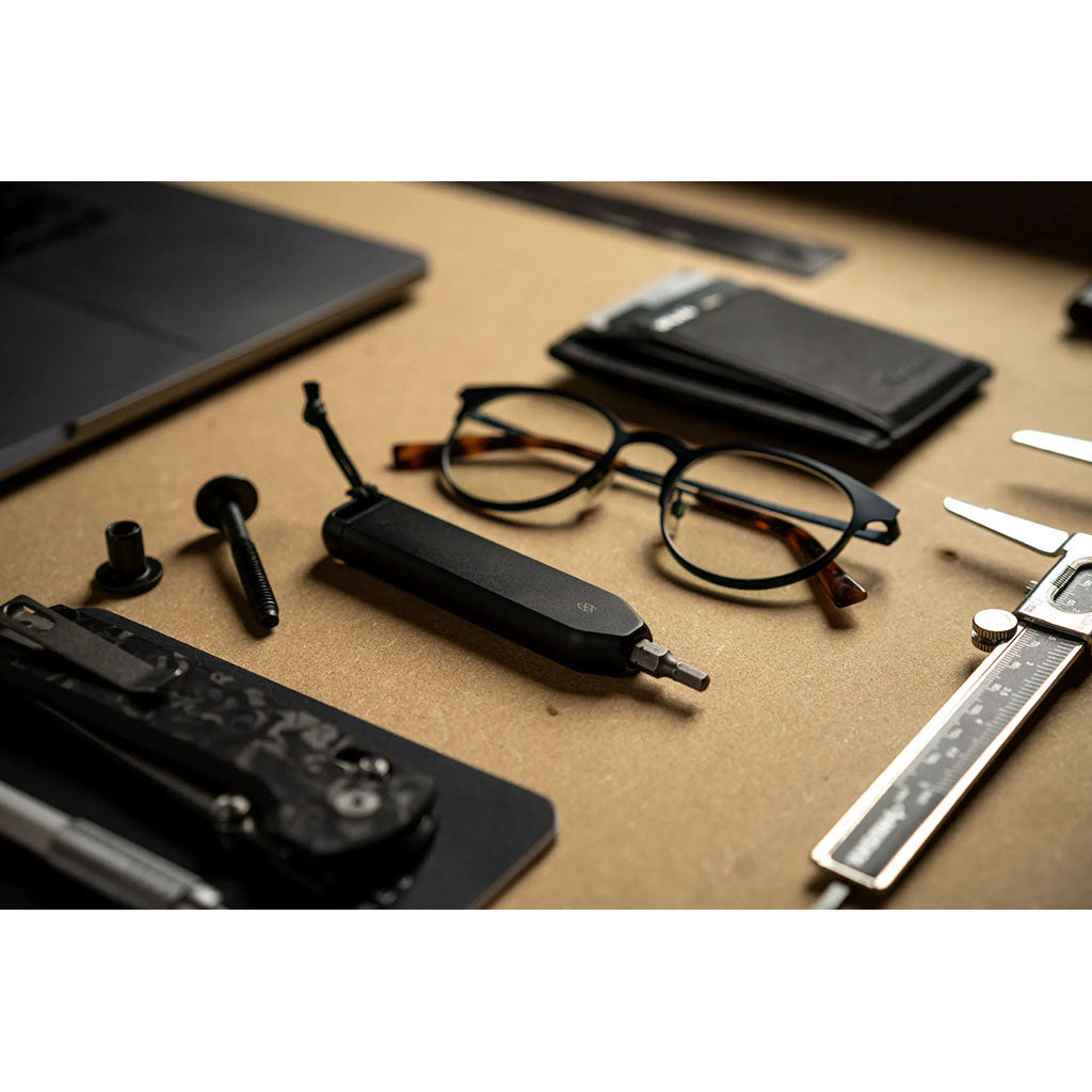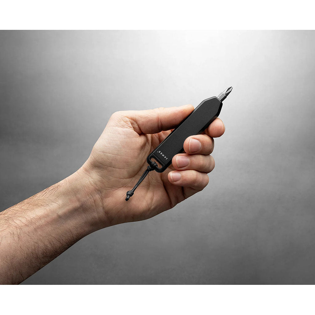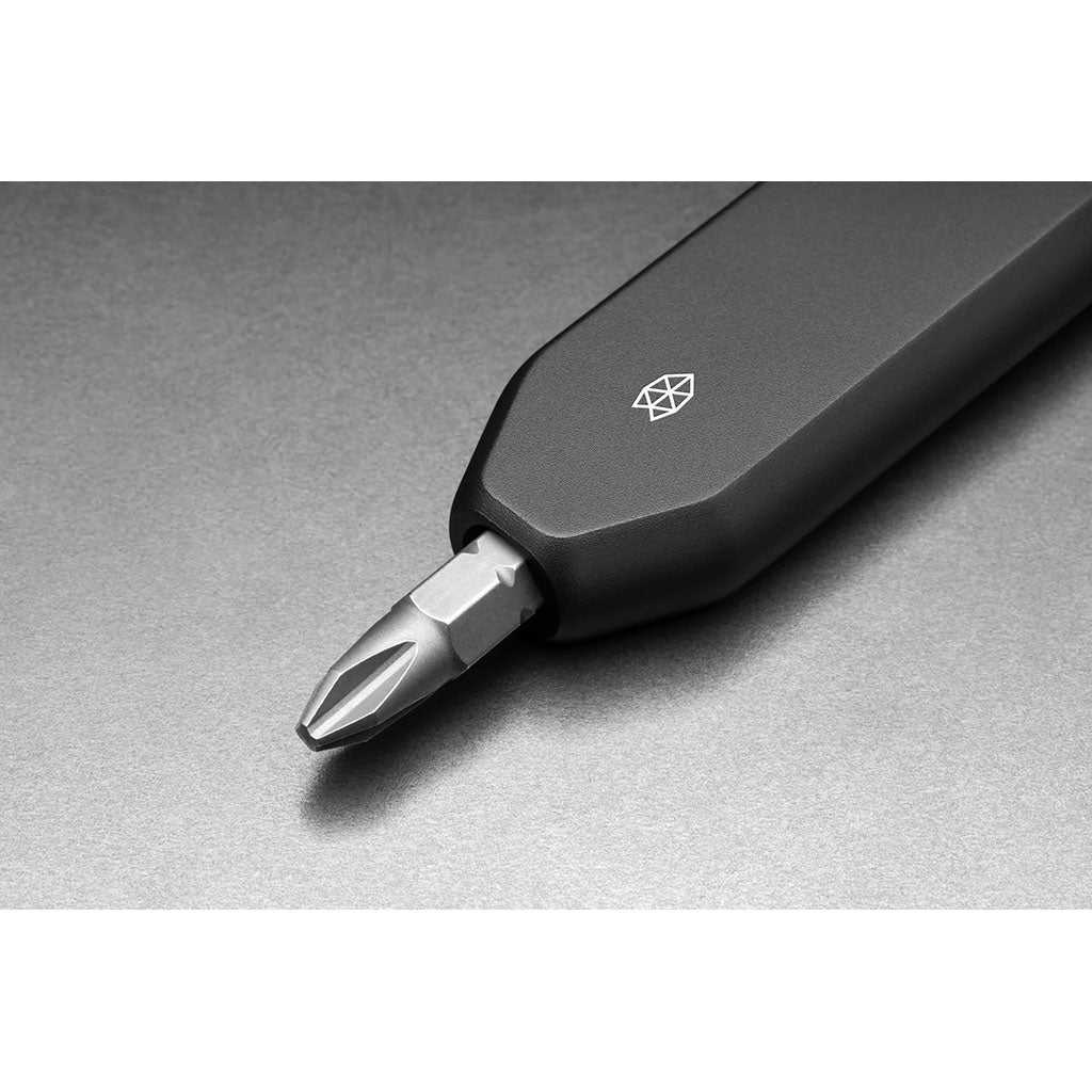 Wenn Sie schon einmal versucht haben, eine Schraube mit dem Schraubendreher" eines Taschenmessers oder Multitools zu lösen, wissen Sie vielleicht, wie leicht es ist, frustriert zu werden und eine Klinge herauszuziehen, um zu versuchen, die Arbeit zu erledigen. Jetzt müssen Sie Ihr Lieblingstaschenmesser nicht mehr zerkratzen, wenn Sie den Fahrradvorbau einstellen oder eine Reparatur an Ihrer Campingausrüstung vornehmen. Das Warrick ist ein schlanker und eleganter Bit-Treiber von The James Brand, der zu einem festen Bestandteil des EDC werden wird. Das aus leichtem und robustem eloxiertem Aluminium gefertigte Werkzeug hat ein minimales Packmaß, bietet aber dank des verbreiterten Gehäuses ein hohes Drehmoment. Es wird mit vier Bits der gängigsten Größen (von der deutschen Marke Wiha) geliefert, die im Inneren des Werkzeugs verstaut werden können, so dass Sie die am häufigsten vorkommenden Schrauben lösen können. Da wir wissen, dass jedes Kit ein wenig anders ist, haben wir ihn so konzipiert, dass er mit einer breiten Palette von Bits auf dem Markt kompatibel ist, damit Sie genau das nehmen können, was Sie brauchen könnten.