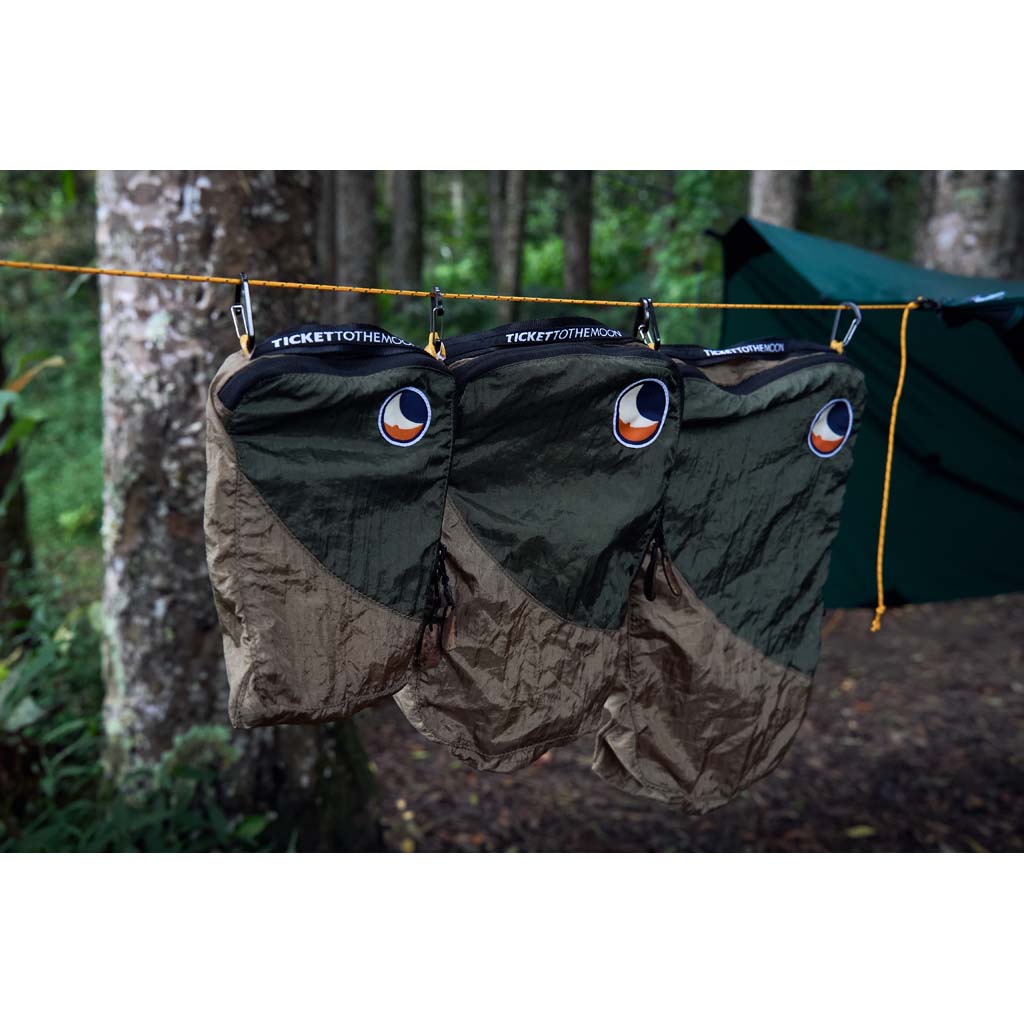 Das einzige wirkliche Problem mit einer Ticket to the Moon-Hängematte ist, sich selbst davon zu überzeugen, aus ihr herauszurollen und sich auf ein Abenteuer zu begeben - aber glücklicherweise machen das schnelle S-Haken-Aufhängesystem und der speziell entworfene Packsack es zu einem Kinderspiel, die Hängematte mit auf Reisen zu nehmen.