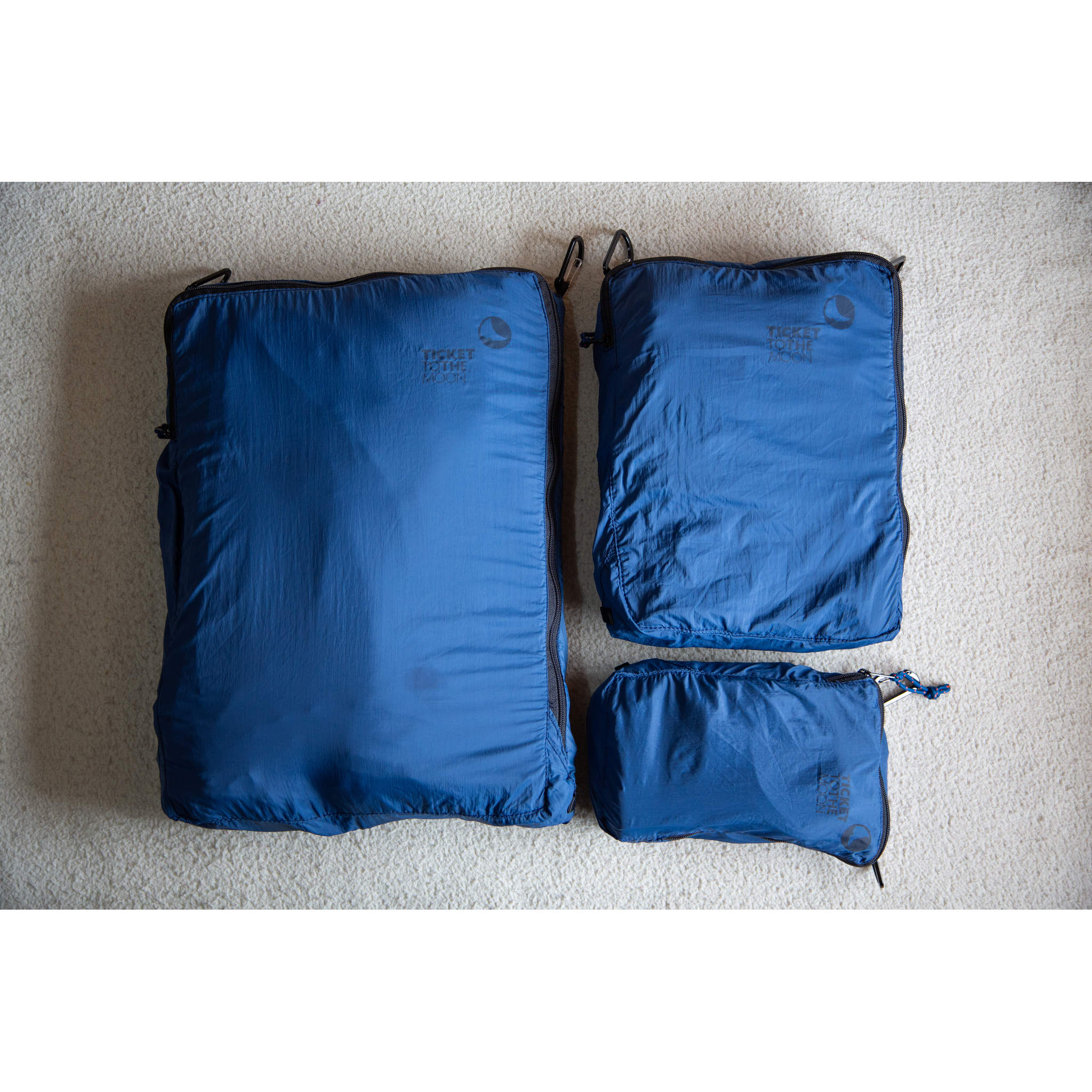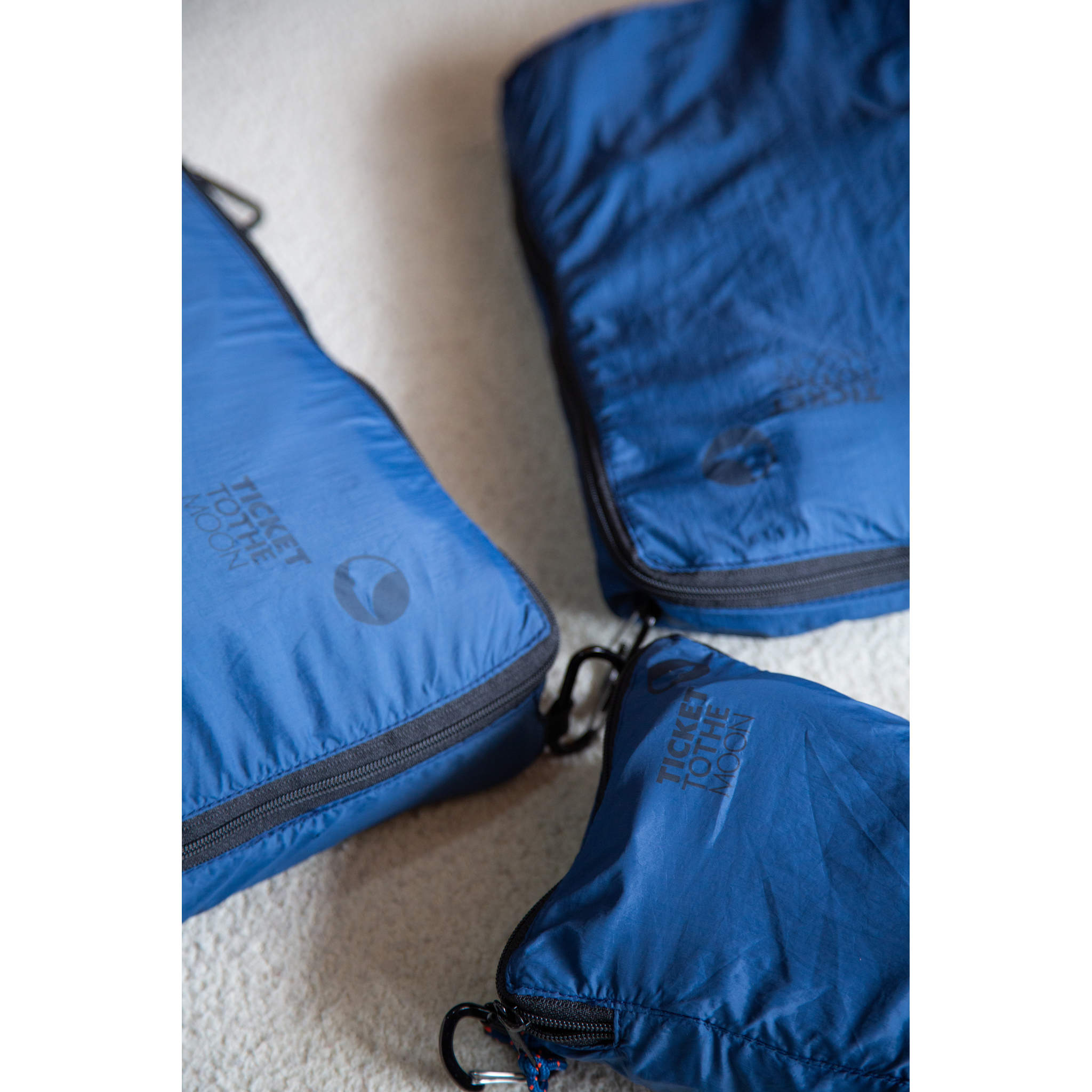 New ultraight version of the much loved Travel Cube from Ticket to The Moon. Stylish and super handy packing cubes that let you compartmentalise your pack so you can maximise space and more easily find the things you need. Ranging from 0.7 to 6.3 litres of capacity, they are ideal for adventures of all sizes, and — for added utility — can be hung on a line thanks to the included carabiners when you need a makeshift wardrobe.