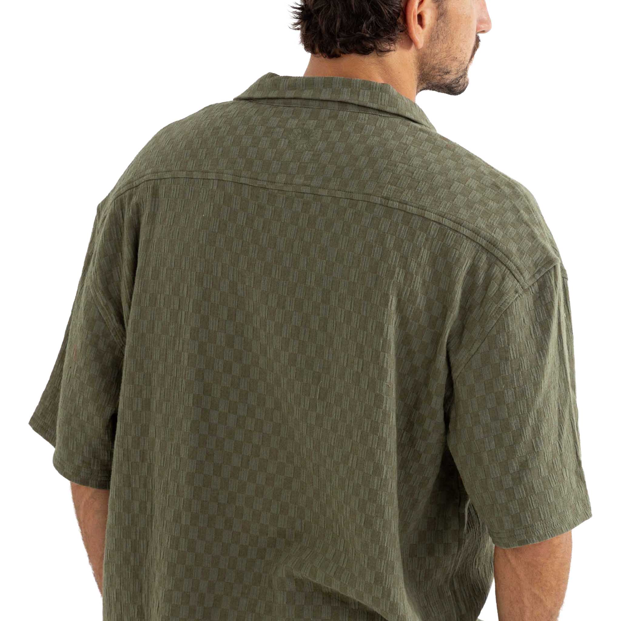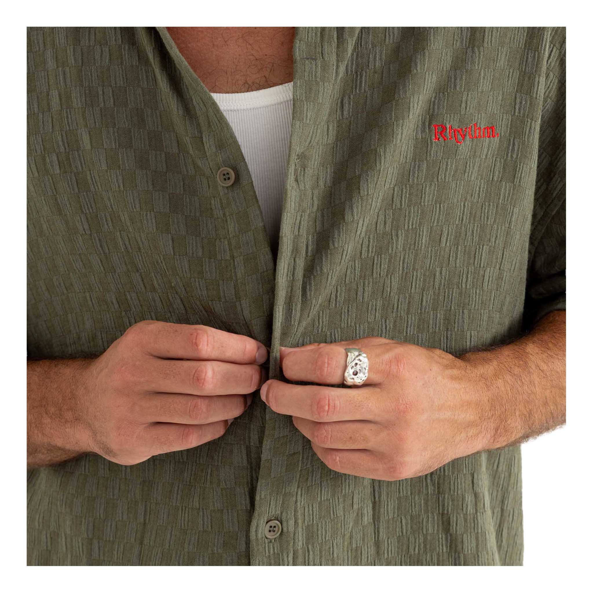 Karohemden sind entweder genau richtig oder völlig daneben. Wenn Sie es richtig machen, sehen Sie cooler aus als eine Tom-Ford-Aftershave-Werbung, wenn Sie es falsch machen, sehen Sie aus wie ein glatzköpfiger Mittelmanager, der am Wochenende mit seinem Chef Golf spielt. Das Wash Check Relaxed Hemd von Rhythm in Grün gehört eindeutig in das erste Lager. Es ist aus einer Mischung aus 70 % Viskose und 30 % Leinen gefertigt und bietet die ideale Kombination aus Atmungsaktivität und Faltenwurf. Rayon sorgt für einen fließenden Stoff mit leichtem Glanz, der sich edler anfühlt als reine Baumwolle, während Leinen natürliche kühlende Eigenschaften und eine charakteristische Textur bietet. Das Karomuster sorgt für visuelles Interesse, ohne überwältigend zu sein, und schafft Tiefe und Variation statt flacher Uniformität. Was dieses Kleidungsstück für warmes Wetter wirklich geeignet macht, ist die leichte Konstruktion und die lockere Passform - es lässt die Luft gut zirkulieren, anstatt zu kleben, und ist daher auch bei feuchtem Wetter sehr bequem. Die grüne Farbe ist wunderbar vielseitig und passt zu allem, von marinefarbenen Shorts bis hin zu beigen Chinos, und hat dennoch genug Charakter, um interessant zu sein. Die dezente Stickerei auf der linken Brust fügt ein Markenzeichen hinzu, ohne das Design zu erdrücken, so dass alles sauber und unaufdringlich bleibt. Perfekt für Strandbars, zwanglose Abendessen oder überall dort, wo man ohne großen Aufwand einigermaßen vorzeigbar aussehen muss.