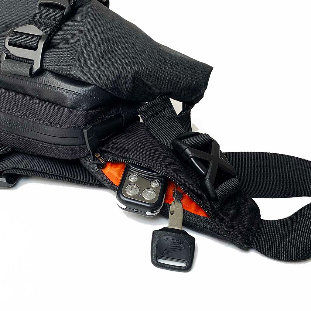 - Seitliche Reißverschlussfächer für schnellen Zugriff